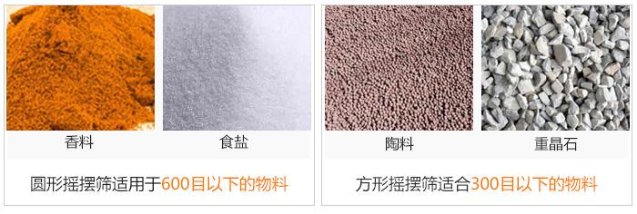 圓形搖擺篩適用于輸送600目以下的物料,如(香料、糖鹽等),單位之間內(nèi)方形搖擺篩比圓形搖擺篩篩分量大。方形搖擺篩比圓形搖擺篩篩分精度低,方形搖擺篩適合輸送300目以下的物料,如(陶料、重晶石等)。