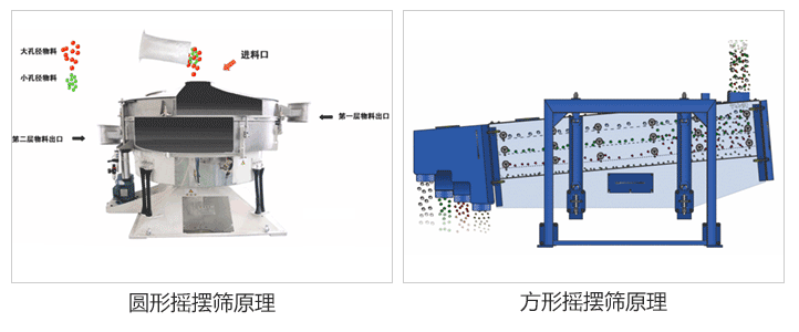 圓形搖擺篩是圓形的,方形搖擺篩是方形的。