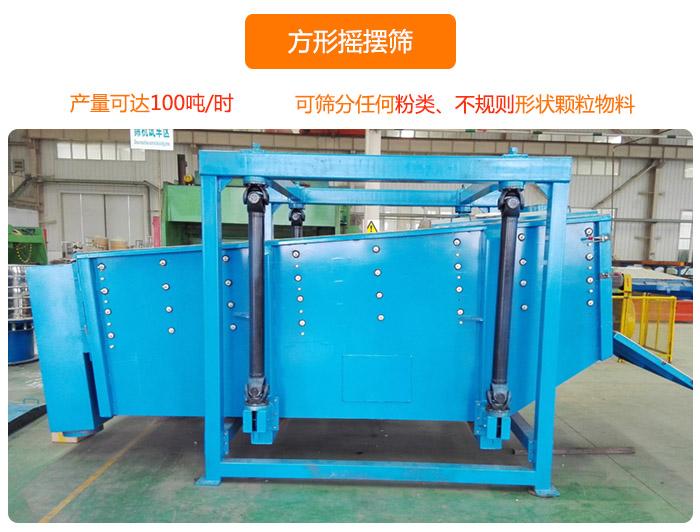 方形搖擺篩又稱長方形搖擺篩、往復篩,采用旋回往復運動方式傳輸給整個篩面一套組合運動,物料篩分開始于一個水平圓周運動的進料端,進料端的圓周回轉運動傳輸給整個篩面,使物料迅速分布,提高了篩面的利用率,篩分效率高,處理量大。